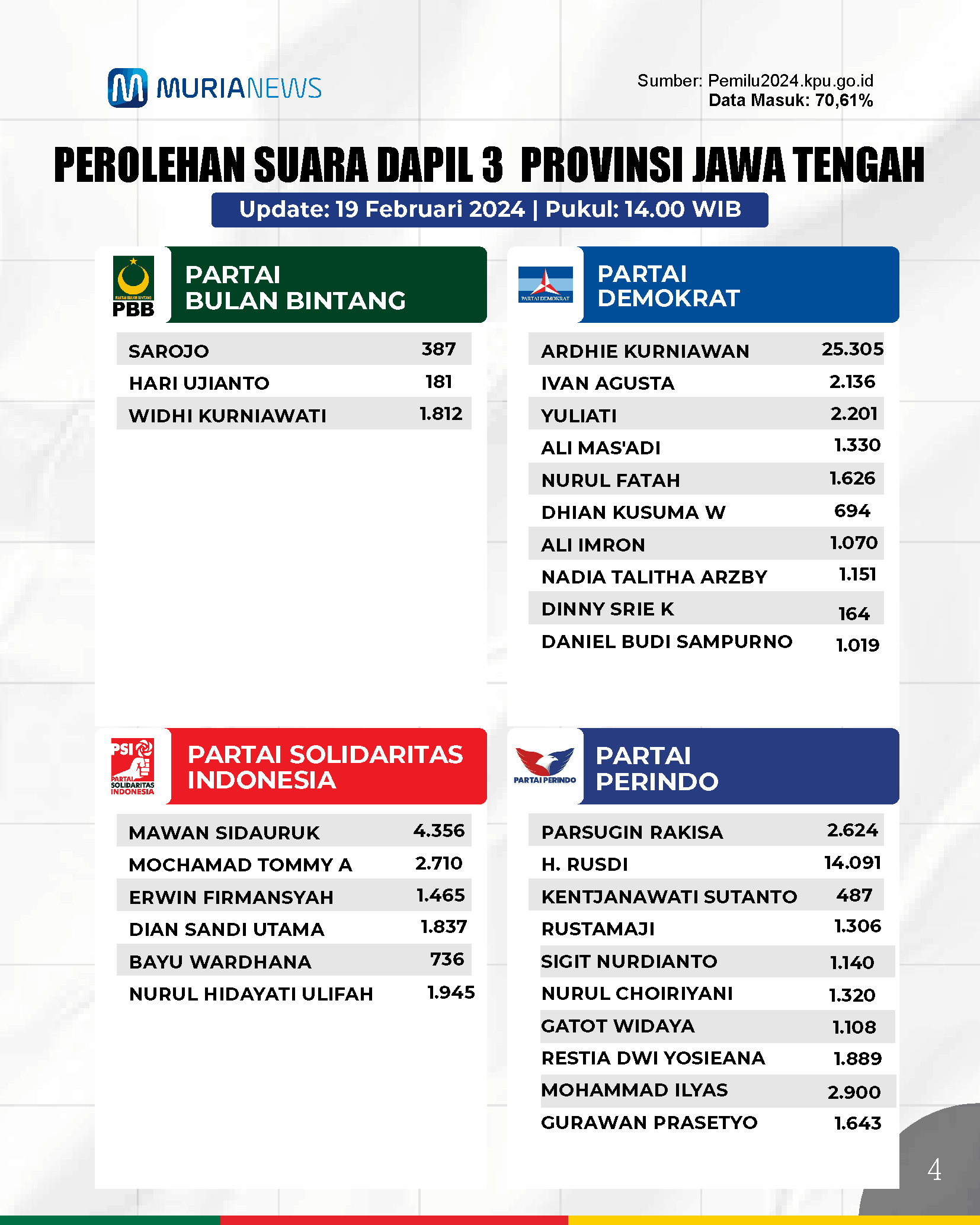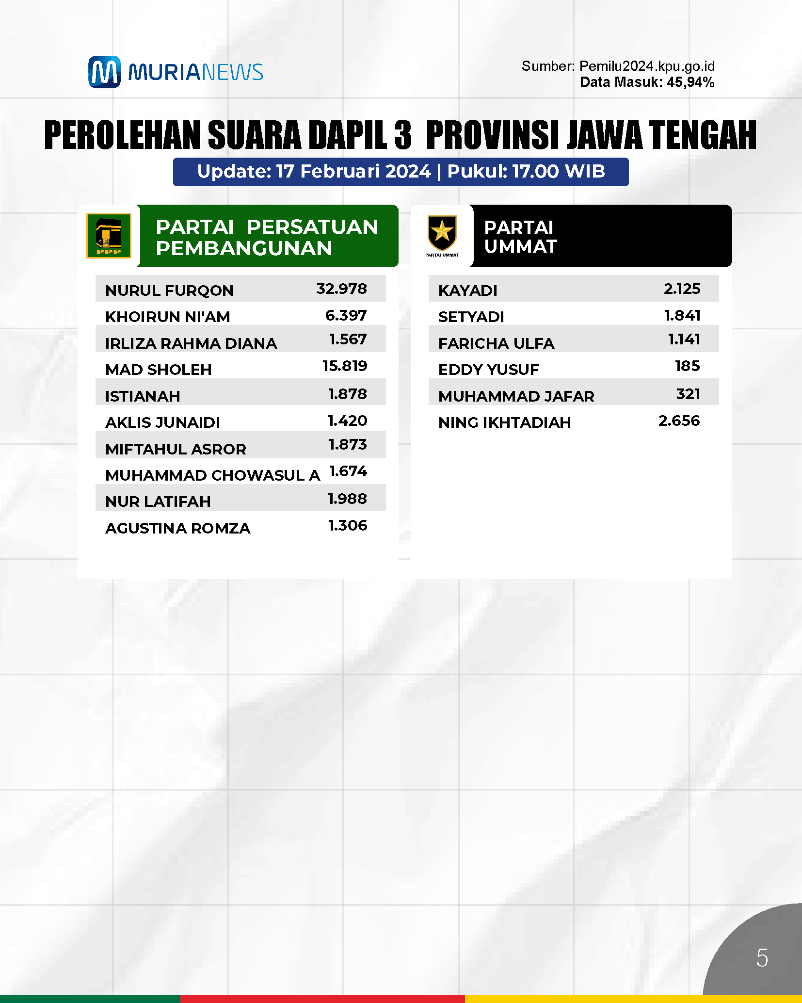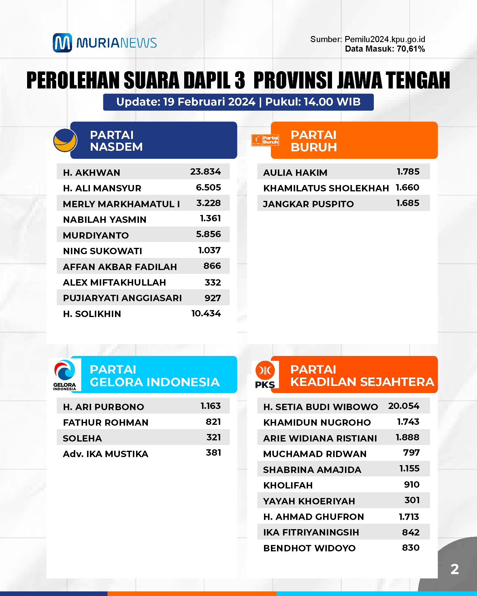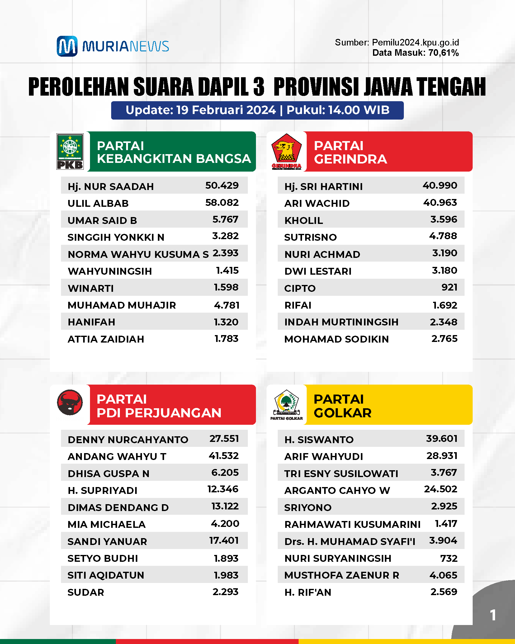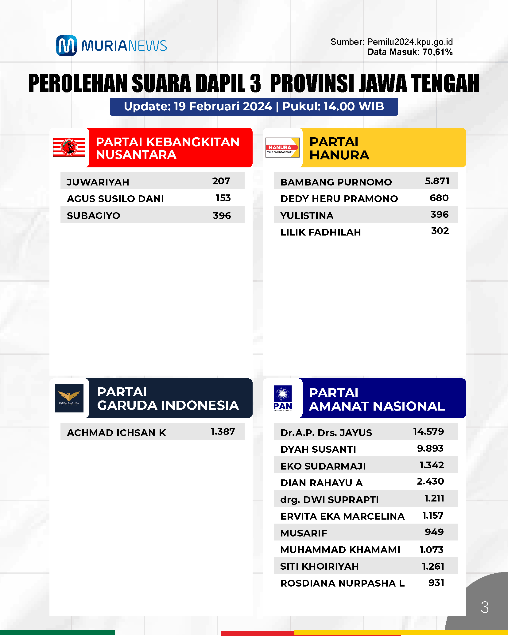 Update Suara Pileg DPRD Jateng Dapil 3 Tanggal 20 Februari