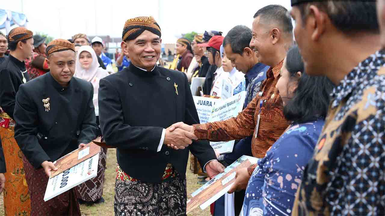 Ketua DPRD Jateng Sumanto saat memberikan penghargaan di acara HUT Jateng ke-80 di Kabupaten Batang.(Istimewa/DPRD Jateng)