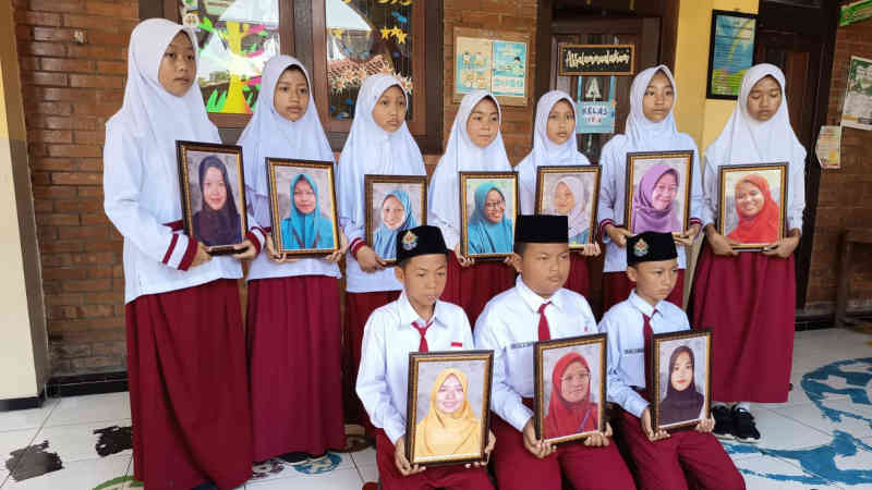 Suasana semakin haru ketika 10 siswa kelas VI yang masing-masing menunjukkan foto guru mereka yang telah meninggal dunia.