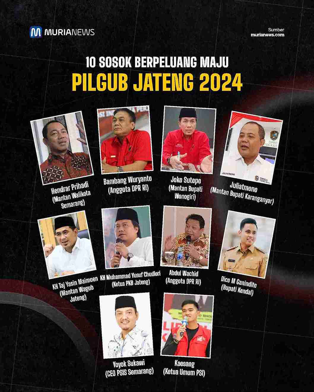 Siapa saja mereka? Berikut 10 sosok yang berpeluang maju di Pigub Jateng 2024 menurut Murianews.com.